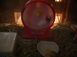 昨日から回し車をケージに入れてもらい喜んで使ってます^^